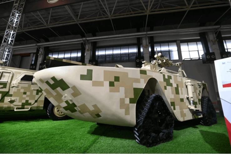 記者現(xiàn)場(chǎng)看到,眾多新型武器裝備已抵達(dá)兵器館。其中,兩棲無(wú)人戰(zhàn)車和輕型高機(jī)動(dòng)車載蜂群武器系統(tǒng)均為首次亮相。兩棲無(wú)人戰(zhàn)車可應(yīng)對(duì)未來(lái)多元化兩棲任務(wù);輕型高機(jī)動(dòng)車載蜂群武器系統(tǒng)可執(zhí)行偵察、區(qū)域封控、精確打擊、集群打擊毀傷評(píng)估等多樣化任務(wù)。